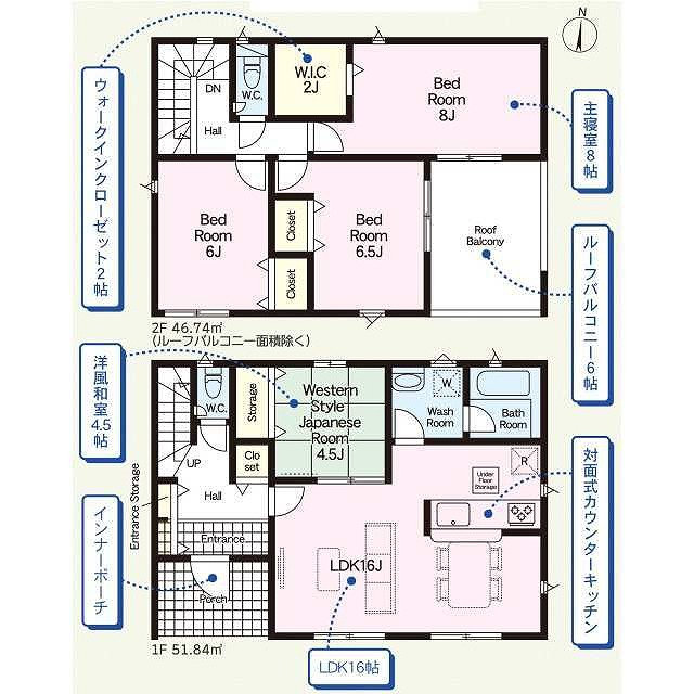 (1階)和4.5、LDK15、(2階)洋6、洋6、洋7.5 |